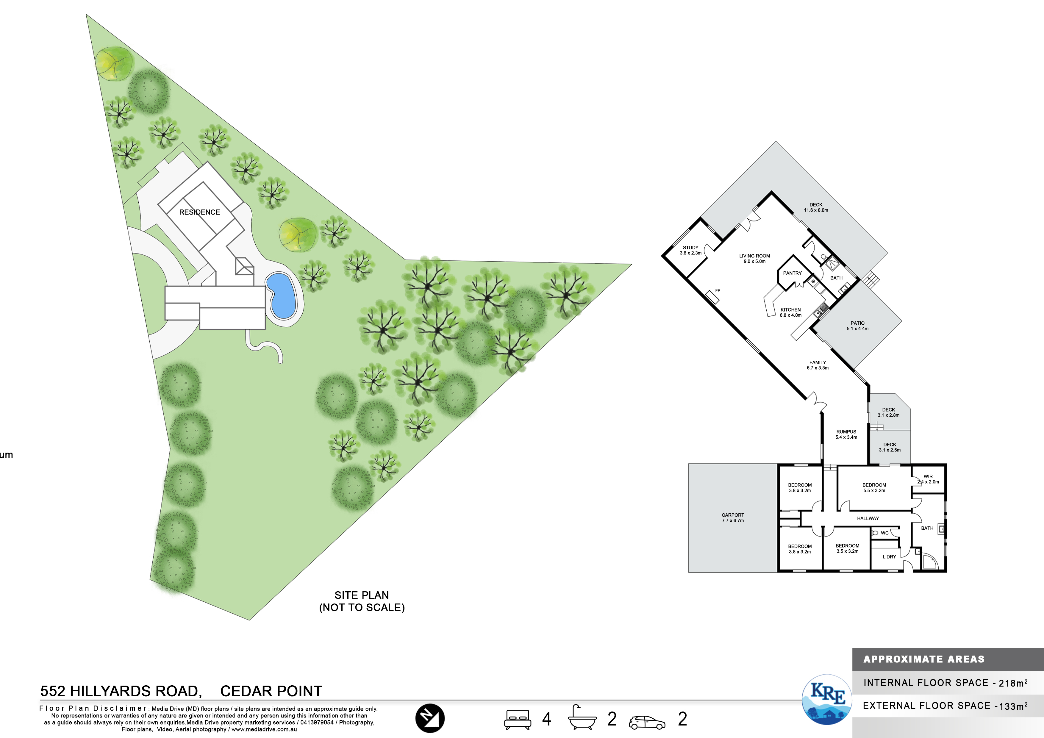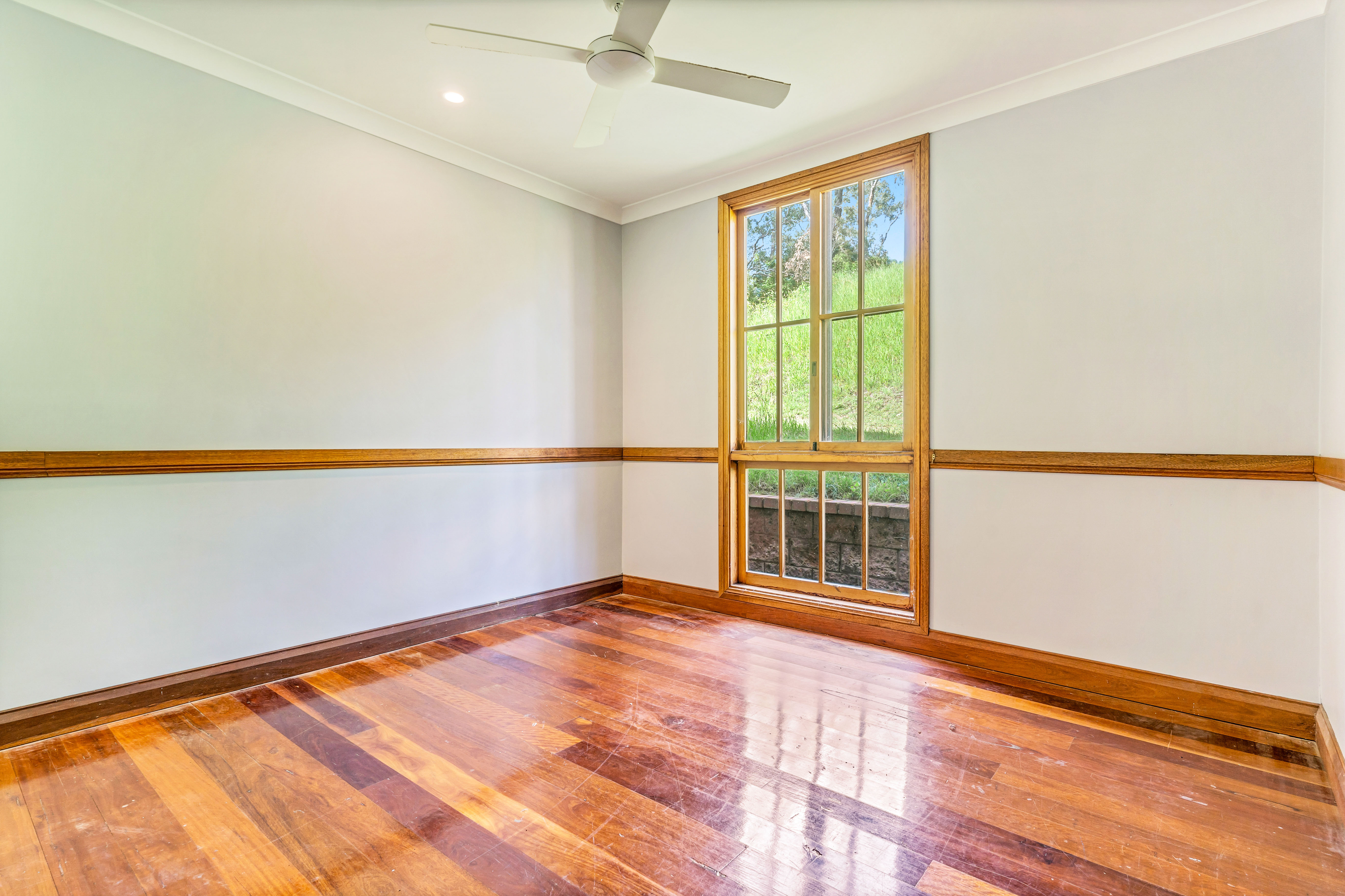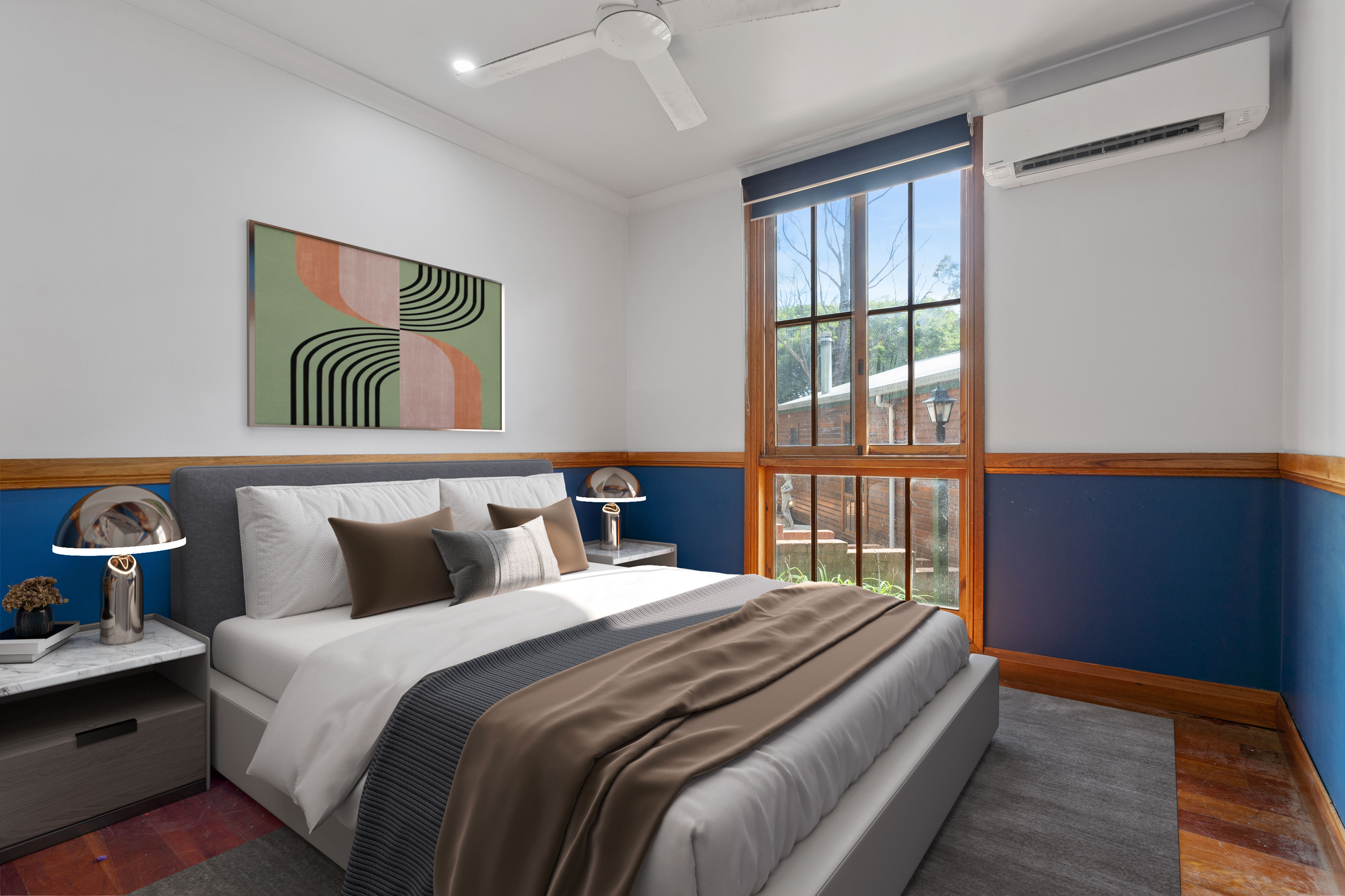 Sleeping accommodations include four well-proportioned bedrooms, two with built-in wardrobes, while the expansive master suite indulges with a walk-in wardrobe, an en-suite featuring a spa bath, and access to a secluded deck area. Air conditioning units ensure comfort throughout the seasons.