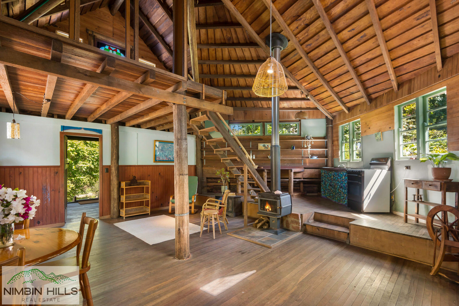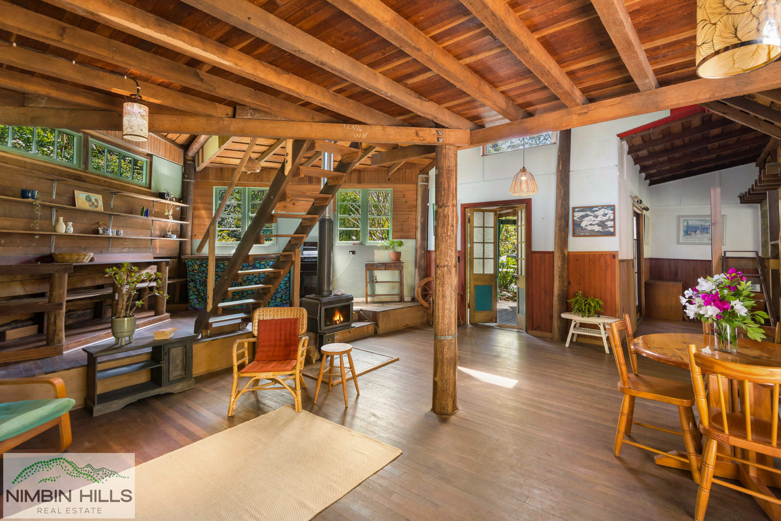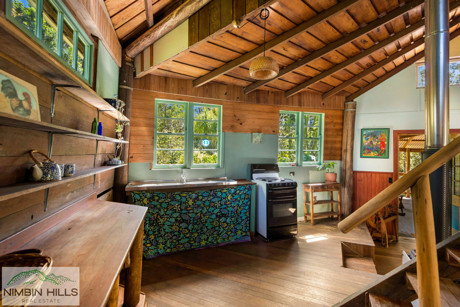 Up a small step is the KITCHEN, a triangular shaped level from where you also access the loft. The kitchen overlooks the northern garden and the rustic timber shelves and benchtop add to the simple charm. The LIVING ROOM opens to both the N/E and the southern