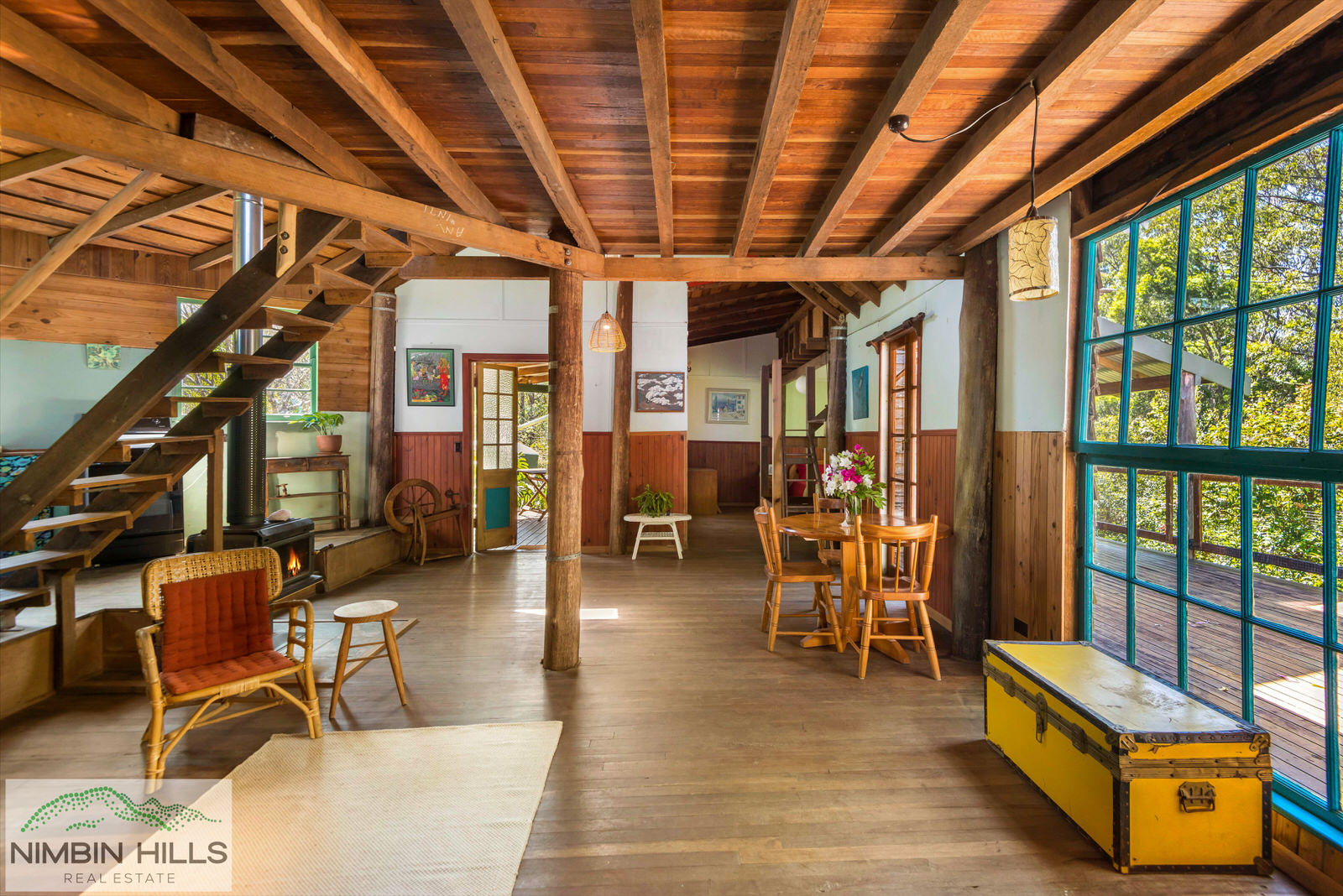 verandahs and the verandahs wrap around to join on the eastern side of the home. A woodfire is positioned centrally to keep the house warm in winter and the cross ventilation through the house, via the forest, will