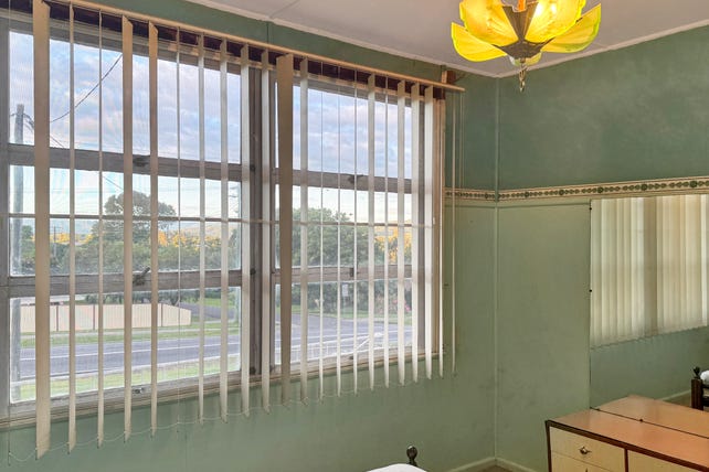 Positioned high and dry with scenic views to the north and south-east, the original home features pine flooring (protected by carpet), a formal lounge, and a centrally located kitchen (renovated approx. 10 years ago). Two bedrooms include built-in wardrobes, with the air-conditioned main bedroom offering extra comfort.