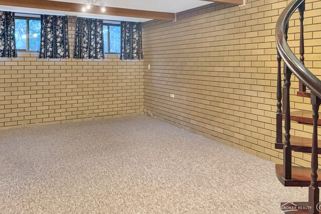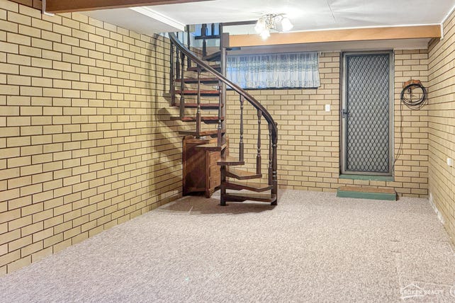 The spacious living and dining area is ideal for year-round living, complete with a combustion wood heater and reverse-cycle air conditioning. A unique spiral staircase leads to a flexible downstairs area—perfect as a rumpus room or 4th bedroom, and a separate home office with its own front entrance.