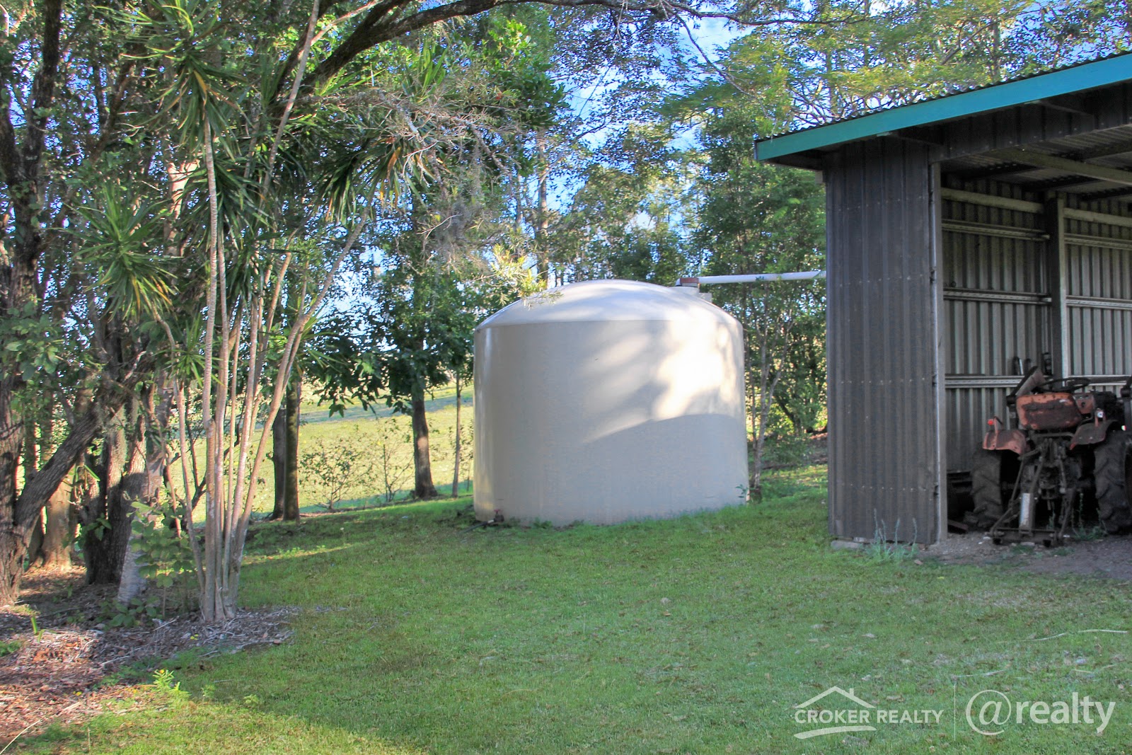 Water is plentiful with a 23,000-liter tank fed from the creek, a 23,500-liter concrete tank, and two 1,000-liter tanks.
