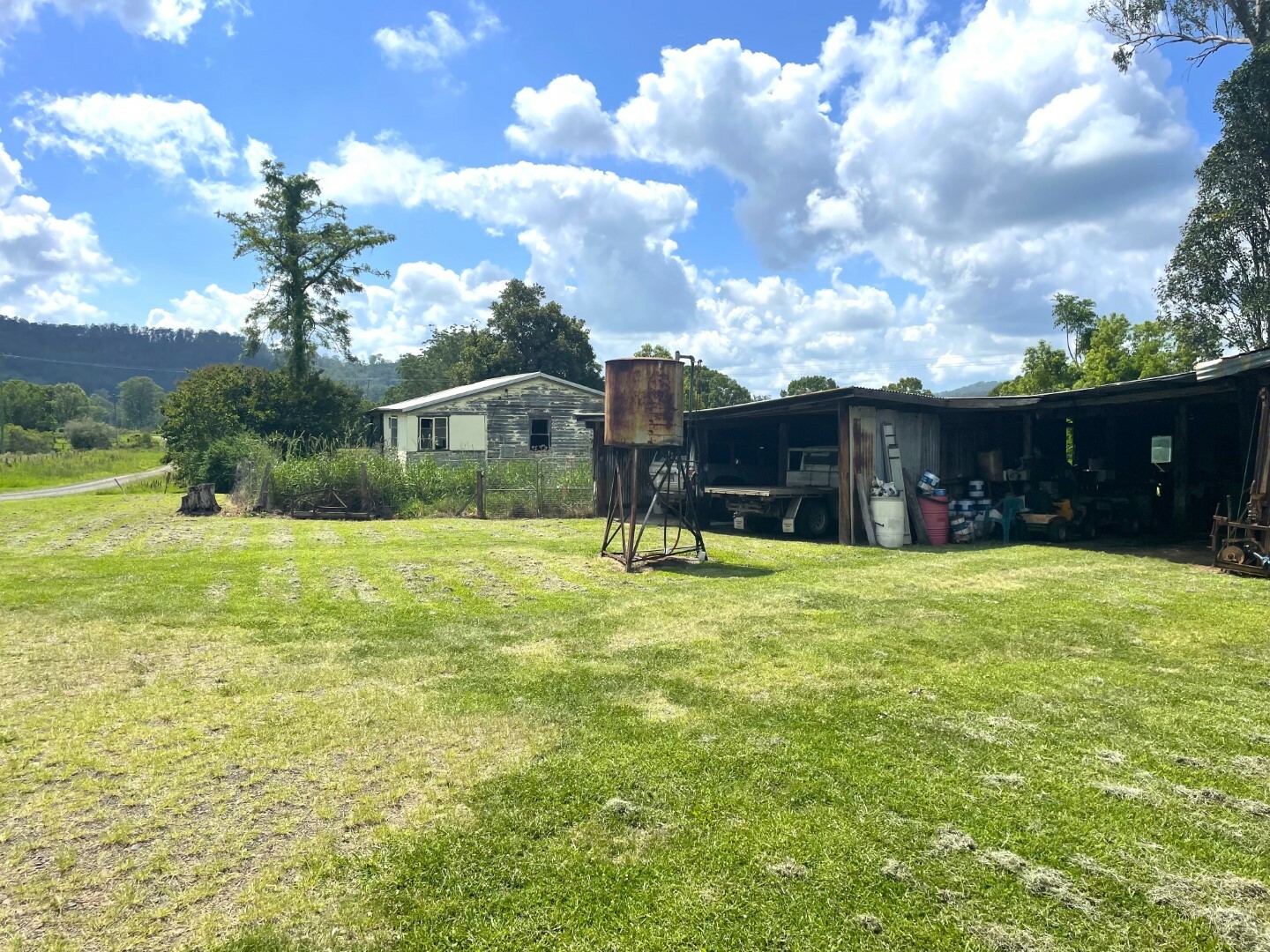 There is an older cottage that needs renovations, storage sheds and a set of fully equipped steel stockyards with vet crush.